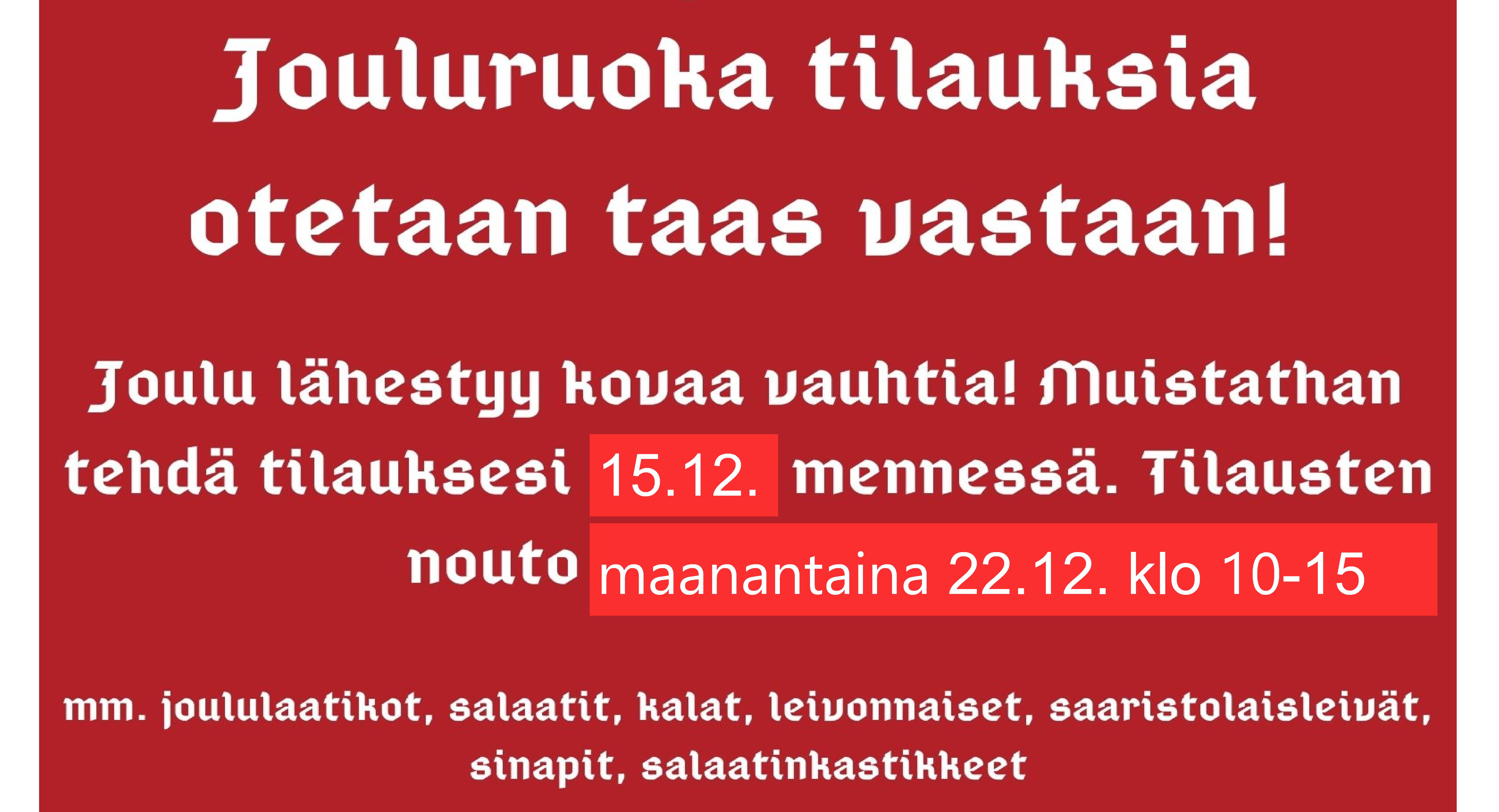 Tarjoilu alkaa - päättyy klo: